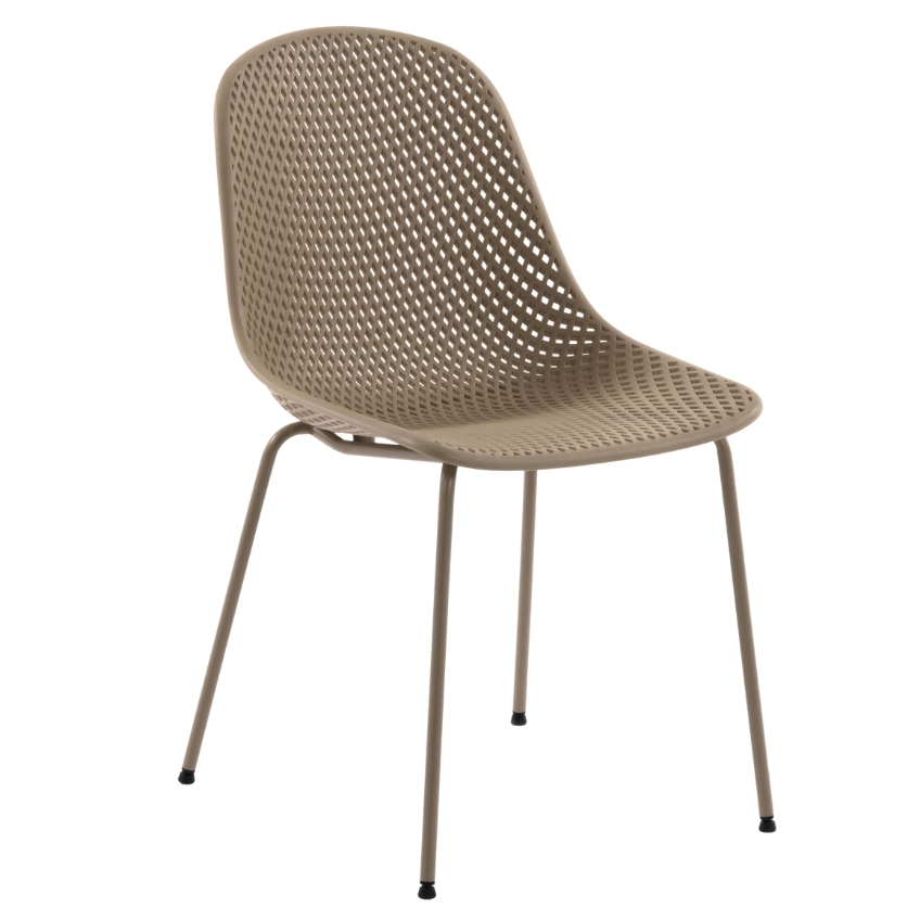 Designová jídelní židle Kave Home Quinby zaujme svým originálním zpracováním. Plastový perforovaný sedák vytváří společně s kovovou podnoží osobitý celek, díky čemuž skvěle doplní moderní interiéry. Využít ji navíc můžete také v exteriéru – bude designovým oživením každého zahradního posezení.