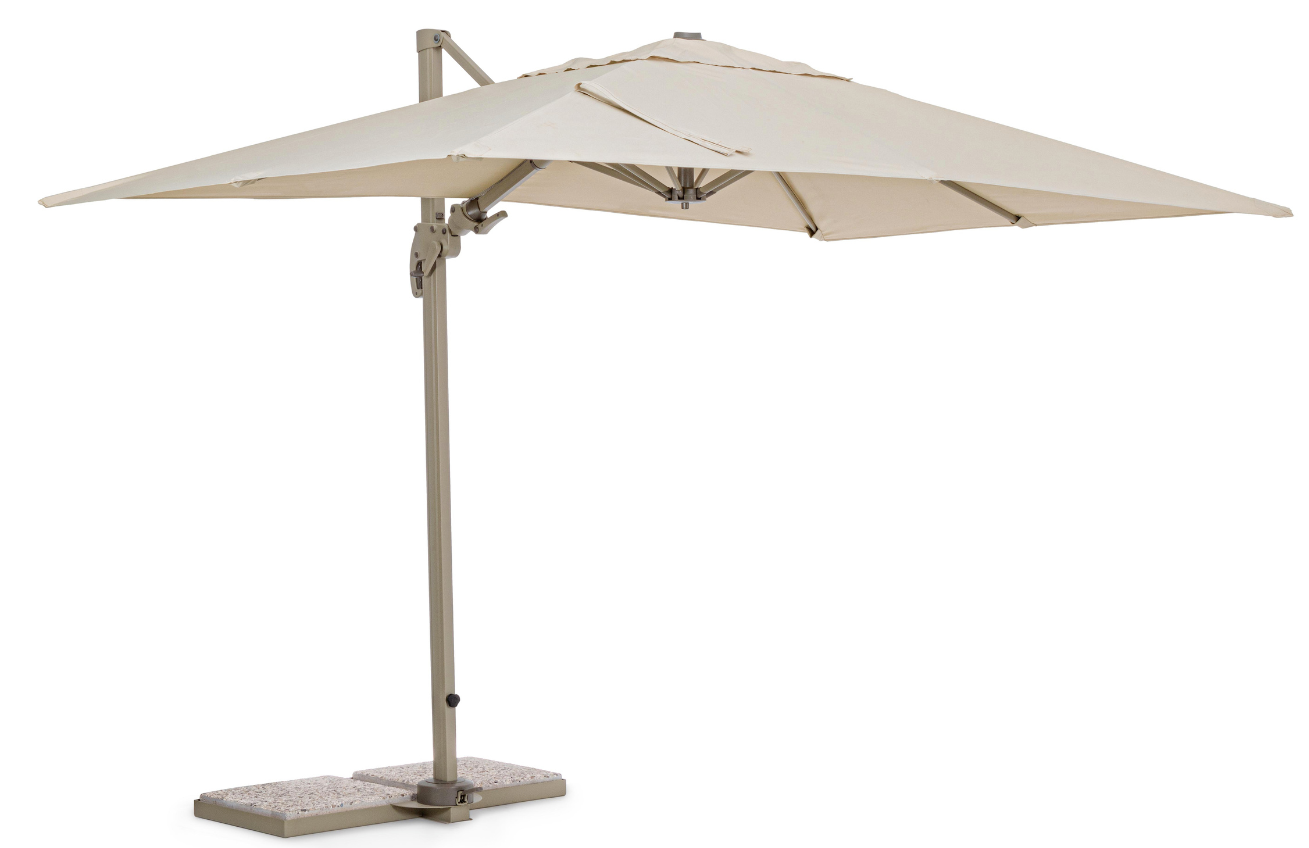 Slunečník Bizzotto Saragozza si užijete pro jeho skvělé praktické vlastnosti. Jedním z nich je možnost náklonu se kterým můžete slunečník nastavit do 4 pozic. Dále nabízí rozsah otočení slunečníku až o 360°. Samozřejmostí je kvalitní, pevná konstrukce z lakovaného hliníku a boční základna pro cementové závaží. Béžový syntetický potah společně s malým větracím otvorem uprostřed plachty je natažen na 8 žebrech slunečníku. Díky jednoduché manipulaci si užijete příjemné chvíle i ve velmi parných dnech.