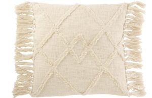 Krásný a trendy - to je bavlněný polštář Rhom od značky J-Line, který vyniká svým dekorativním vyšitým vzorem a třásněmi. Polštář se stane krásným doplňkem zejména na vaší pohovce či křesle, kde vytvoří charismatický a romantický dojem. Díky bílé barvě se bude snadno kombinovat s ostatními doplňky a vy si tak můžete svůj domov zkrášlit a perfektně sladit každý detail. Polštář Rhom zkombinujte i s příjemným plédem Rhom a vytvořte si tak snovou bohémskou atmosféru.