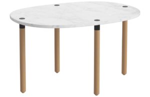 Kolekce konferenčních stolků Tuk je výsledkem práce německého designového studia Büro Famos, které se zaměřuje na kreativní přístupy, udržitelnost a precizní zpracování. Výroba stolků probíhá v dánské firmě Aage Østergaard, která je známá svou dlouholetou tradicí a vysokým standardem řemeslné výroby. Díky tomuto spojení designové kreativity a precizního řemesla vzniká produkt, který je výjimečný ve všech směrech. Kombinace pečlivě vybraných přírodních materiálů, jako je masivní dubové dřevo, elegantní mramor nebo hřejivý travertin, vytváří jedinečné kontrasty, které okamžitě zaujmou. Spoj mezi podnoží a deskou stolu je navržen s ohledem na čistotu a jednoduchost, díky čemuž jej snadno sestavíte bez použití nářadí. Tento minimalistický detail podtrhuje eleganci stolku, zatímco organicky tvarovaná deska přináší příjemný kontrast k přímým liniím konstrukce. Tyto stolky jsou navrženy tak, aby vyhovovaly různým potřebám i interiérům – díky jejich dostupnosti v několika velikostech je můžete snadno kombinovat a vytvořit tak harmonický, ale přesto dynamický dojem. Jejich všestrannost a krása dělají ze stolků Tuk nejen praktický, ale i estetický doplněk, který zve vaše oči k objevování každého detailu.