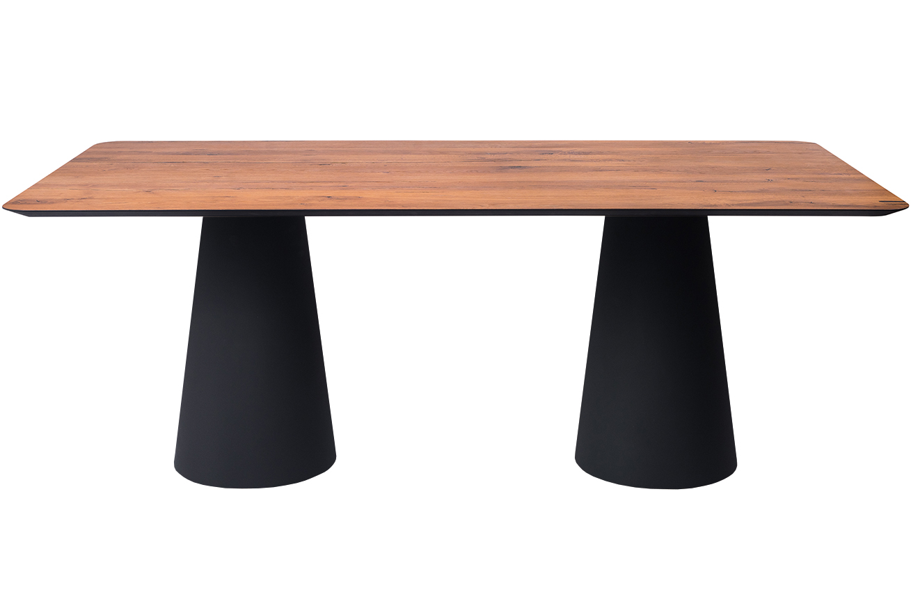 Hnědý dubový jídelní stůl Marco Barotti 180 x 90 cm s matnou černou podnoží