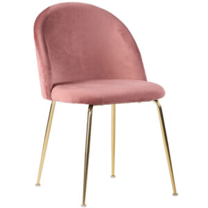 Anneke je elegantní jídelní židle, která zaujme na první pohled díky atraktivnímu designu a působivé kombinaci barev. Sedák židle je čalouněný růžovou sametovou látkou příjemnou na dotek a zadní část opěrky zdobí jemný detail prošívání. Vneste do svého domova závan aktuálních trendů s židlí Anneke.