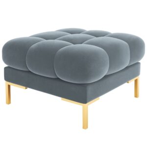 Světle modrá sametová rozkládací rohová pohovka MICADONI MOGHAN 241 cm, levá se zlatou podnoží
