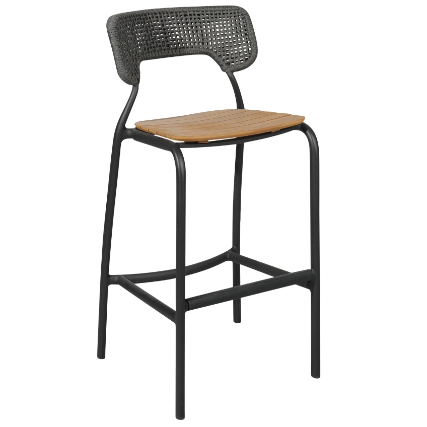 Tmavě šedá zahradní barová židle No.102 Mindo s teakovým sedákem 78,5 cm