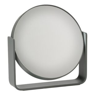 Moderní kulaté kosmetické zrcadlo Ume od dánské značky Zone Denmark je nezbytným doplňkem každé koupelny. Oboustranné kosmetické zrcátko je upevněno v pevném hliníkovém rámu, který mu poskytuje stabilitu i luxusní vzhled. Jedna zrcadlová plocha je standardním zrcadlem s 1x zvětšením, zatímco druhá nabízí 5x zvětšení, které oceníte zejména při líčení nebo kosmetických procedurách. Minimalistické kosmetické zrcadlo do koupelny nabízíme v několika barevných variantách.